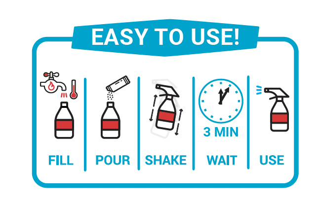 Plus, it’s smart for your operation. The cleaner comes in convenient powder packets you mix on site, so there’s less waste than bulky liquid bottles. Reuse the same spray bottle again and again, saving storage space and lowering shipping costs. It only takes about three minutes to mix, and the packets use just 10% of the shipping and storage space of water-based cleaners. Fewer plastic bottles to dispose of means a cleaner oven and a cleaner supply area.